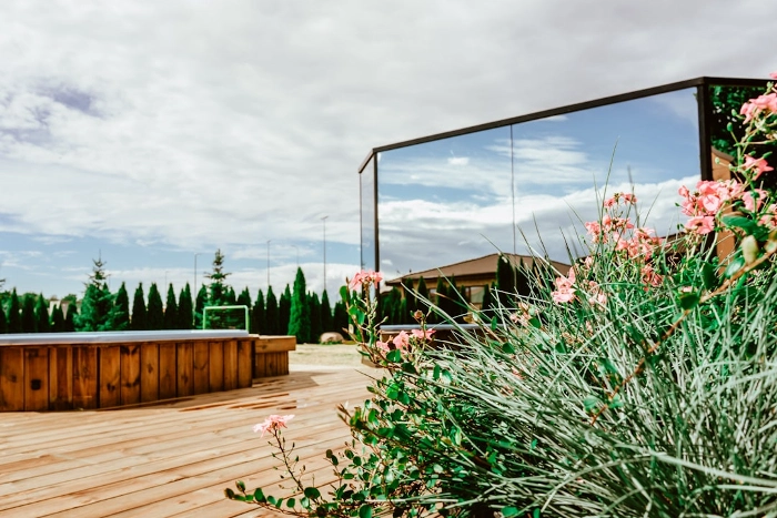 Utilize plants and greenery to create natural privacy screens around your hot tub area. Consider planting tall shrubs, bamboo, or tall grasses to provide a lush and tranquil atmosphere. Climbing plants or vines can be trained on trellises or pergolas to further enhance privacy.